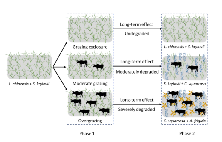放牧对内蒙古温带典型草原长期影响,导致草原退化以及主要植物种类的发生变化