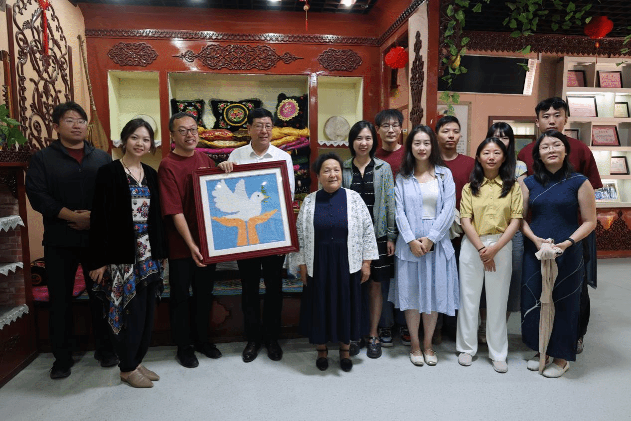 调研团队还在伊吾县和谐大院亲身体验基层服务空间的融情功能;于惠康园社区考察各民族互嵌式发展的生动实践;在北控公司西河环卫所,系统学习“1+3+3+4+N”铸牢工作体系,深刻理解“党建做实了就是生产力”的丰富内涵;在依萨兰·达吾提工作室,倾听达吾提女士以珠绣作品表达对祖国的热爱与祝福,“一个安定团结的国家是多么美好”的话语,道出了全体师生的共同心声。此外,团队走访多处历史文化遗址,对文化润疆工作的深远意义有了更加具体的认知。通过这些层次丰富、内容扎实的走访与实践,师生深刻认识到历史文化浸润与党建引领在基层治理中的核心作用,真切体会到中华民族共同体意识在日常生活中的深厚根基与多元实践路径。
