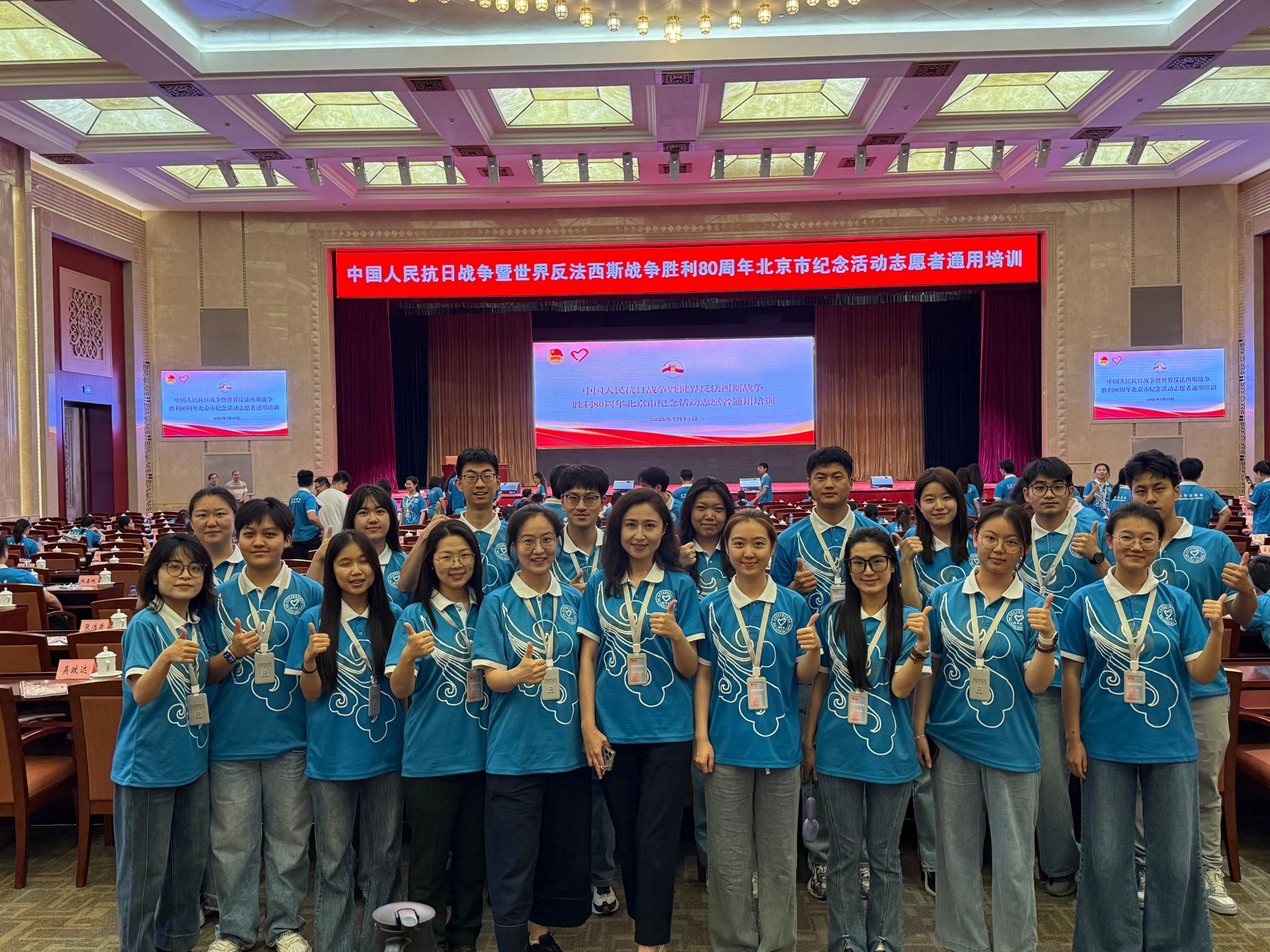 米拉·居尼斯(前排右五)与学校志愿参加中国人民抗日战争暨世界反法西斯战争胜利80周年北京市纪念活动志愿者通用培训