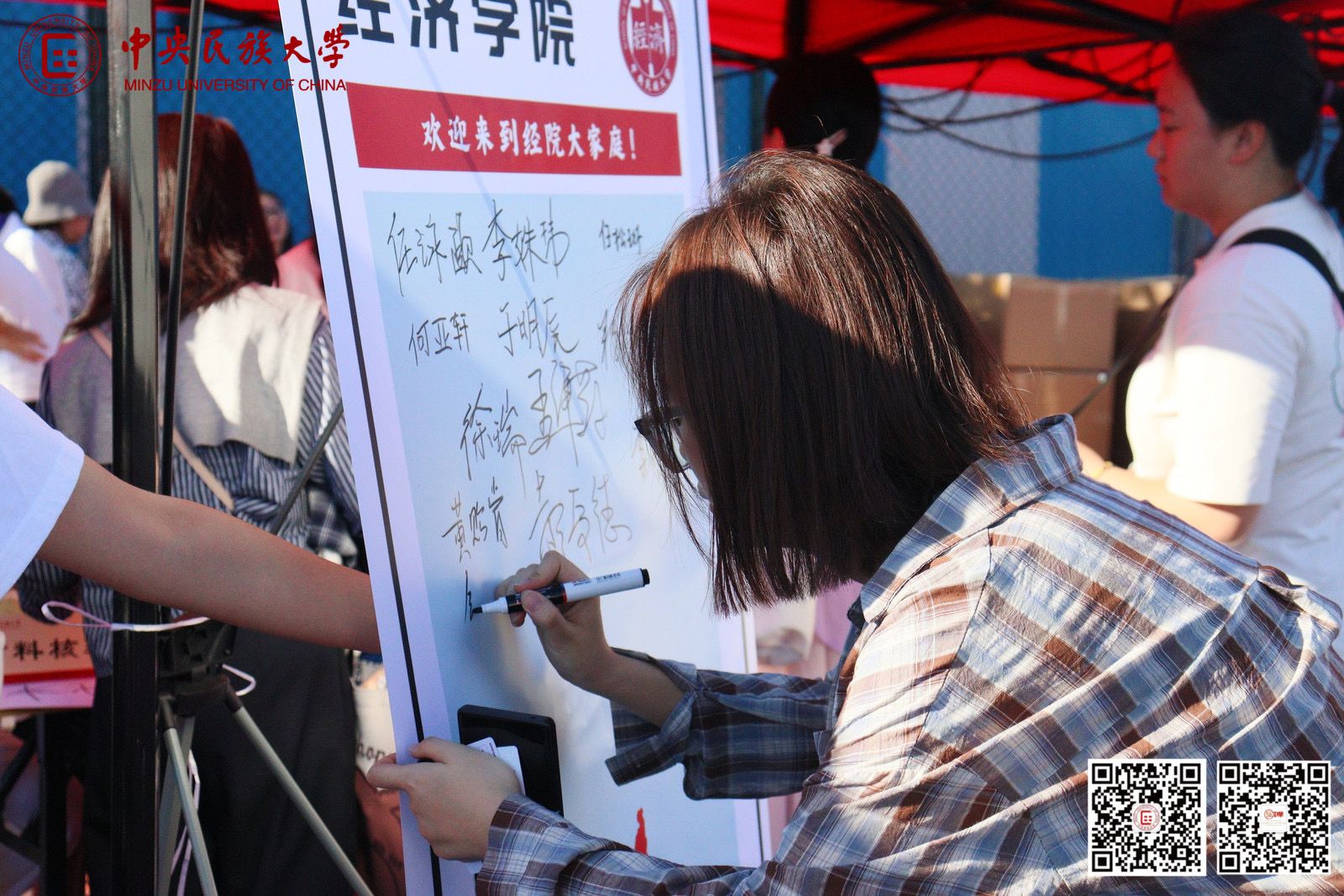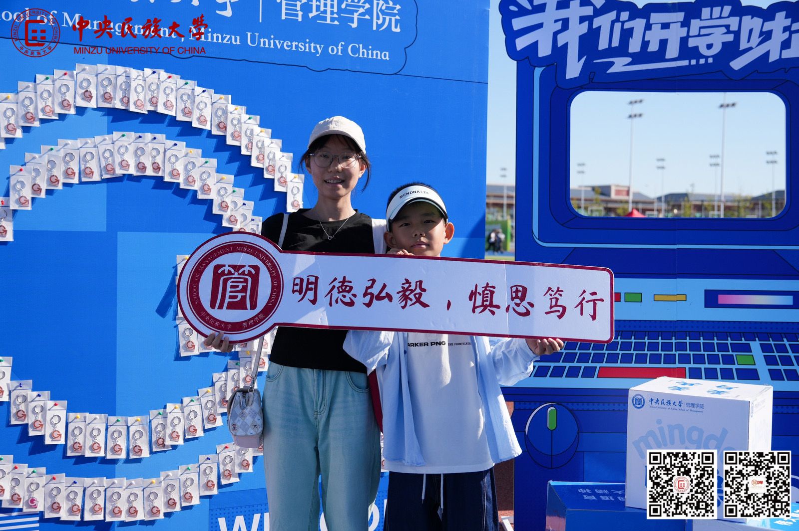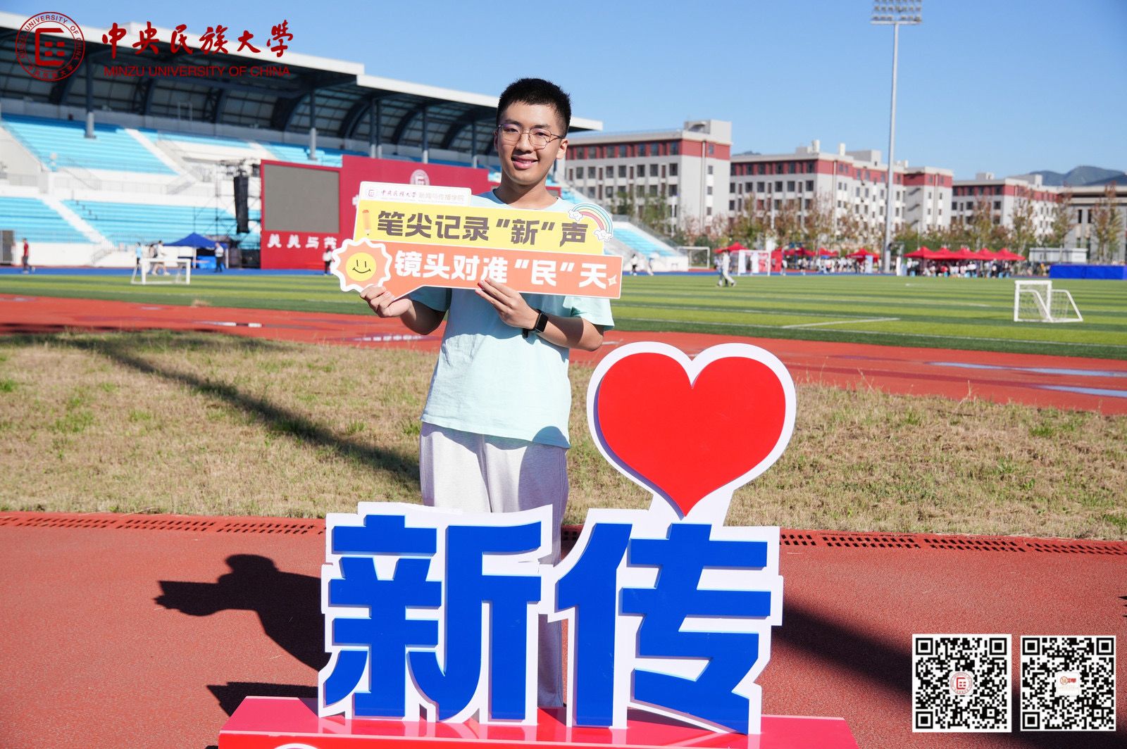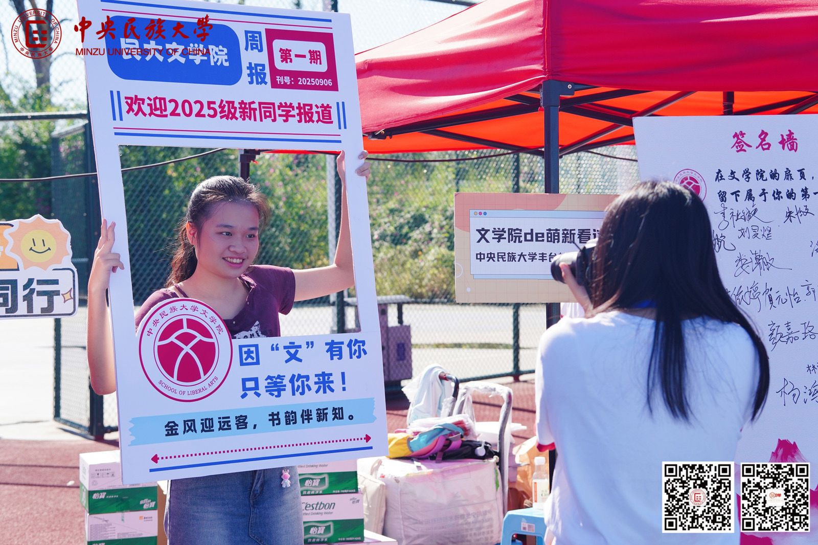 “来,和校门合张影,这是你与民大的第一帧故事。”